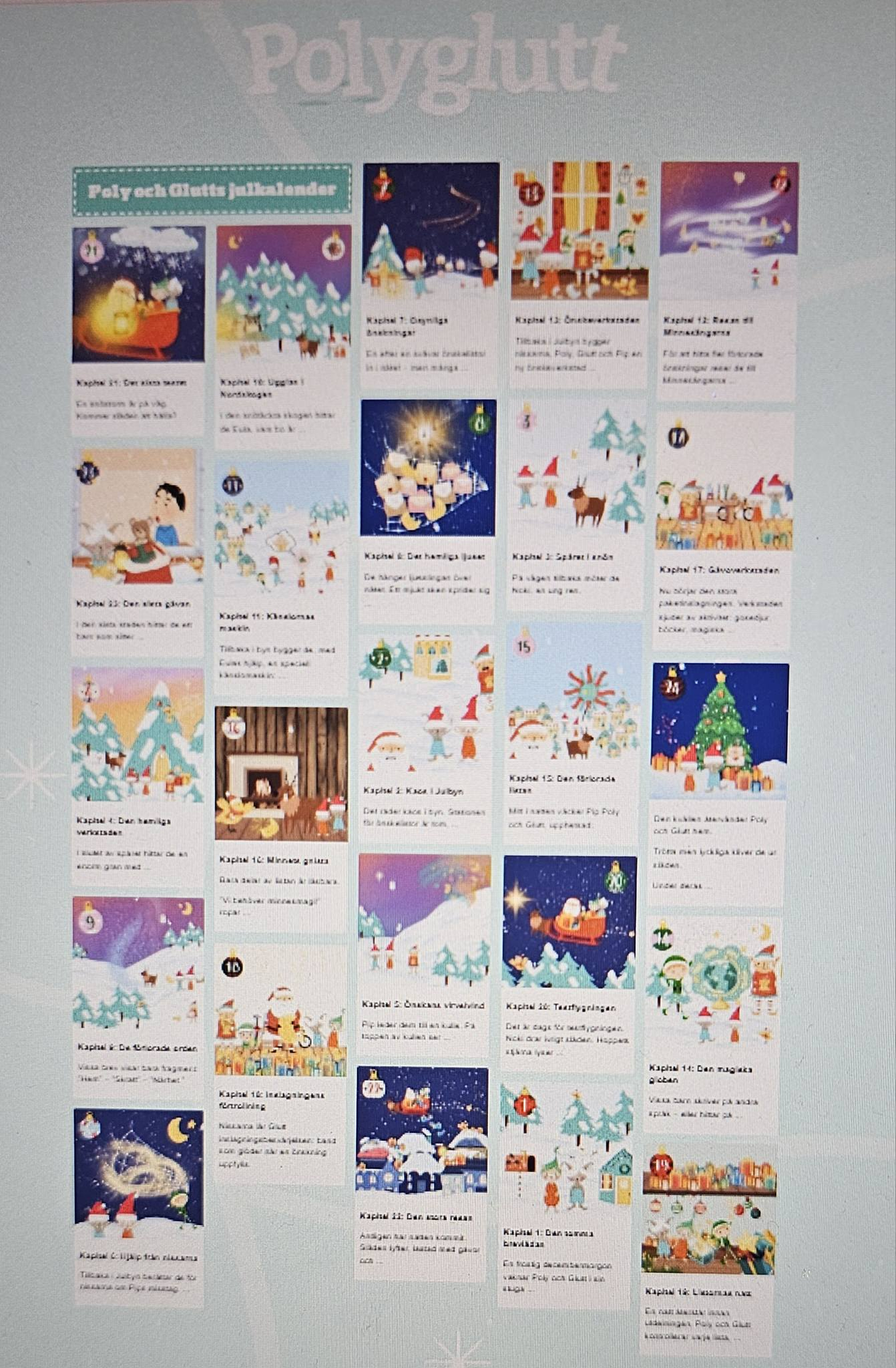 Vårt arbete har centrerats kring Poly & Glutts julkalender, ett spännande äventyr som bjudit på många händelser och överraskningar i sökandet efter de försvunna önskelistorna.