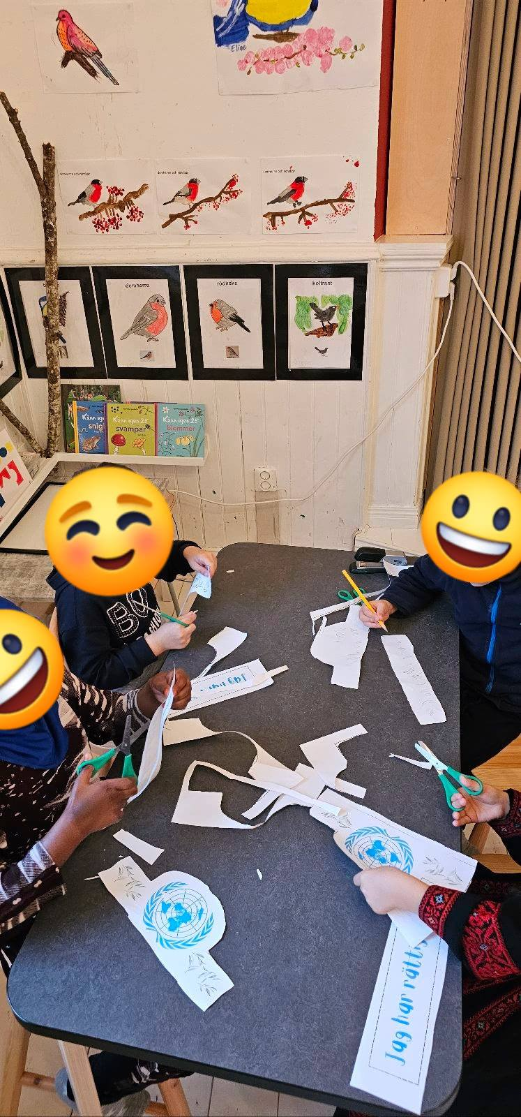Under veckan har vi fördjupat oss i FN:s arbete och dess syfte. Vi har samtalat om våra likheter och olikheter och betonat att varje människa är lika värdefull oavsett hur vi ser ut, vilka tankar vi har, vad vi tycker eller var vi kommer ifrån. Vi diskuterade vad som får oss att må bra, våra rättigheter och de skyldigheter vi har gentemot varandra. Vi poängterade också att alla människor har rätt till liv och frihet.